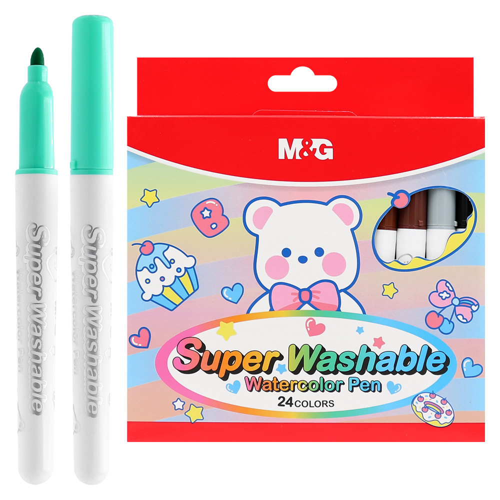 Sada 24 barev snadno omyvatelných fixů na vodní bázi.