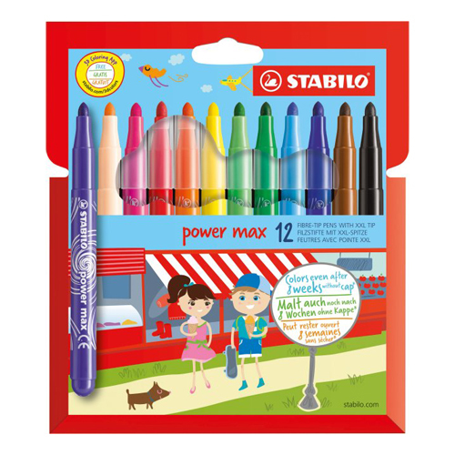 Sada 12 fixů STABILO Power Max XXL je ideální volbou pro všechny, kdo hledají výrazné barvy a odolnost v jednom. Tyto fixy jsou skvělým pomocníkem nejen pro školáky, ale i pro všechny kreativní nadšence.