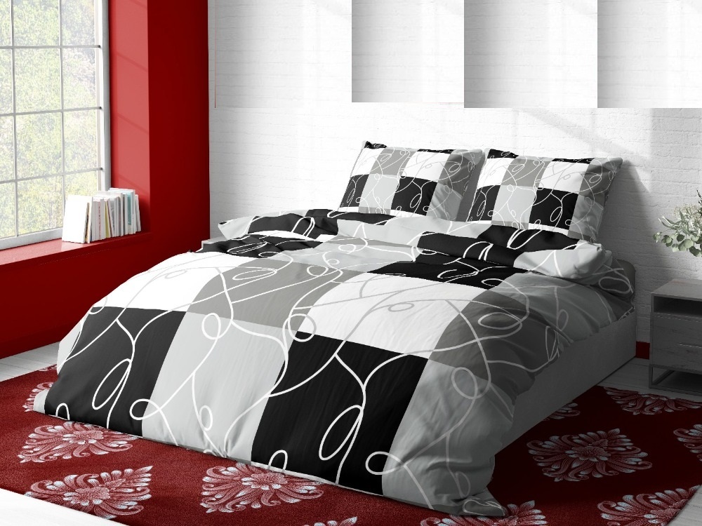 Flanelové povlečení Černé čtverce 140x200, 70x90 cm