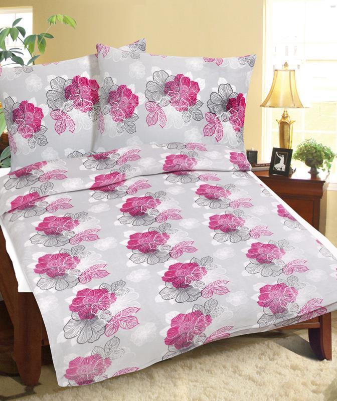 Povlečení MIKROFLANEL - šedorůžový květ - 140x220,70x90 cm