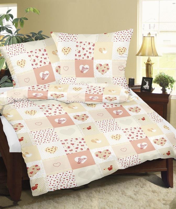 Povlečení flanelové - srdce patchwork - 140x200, 70x90 cm