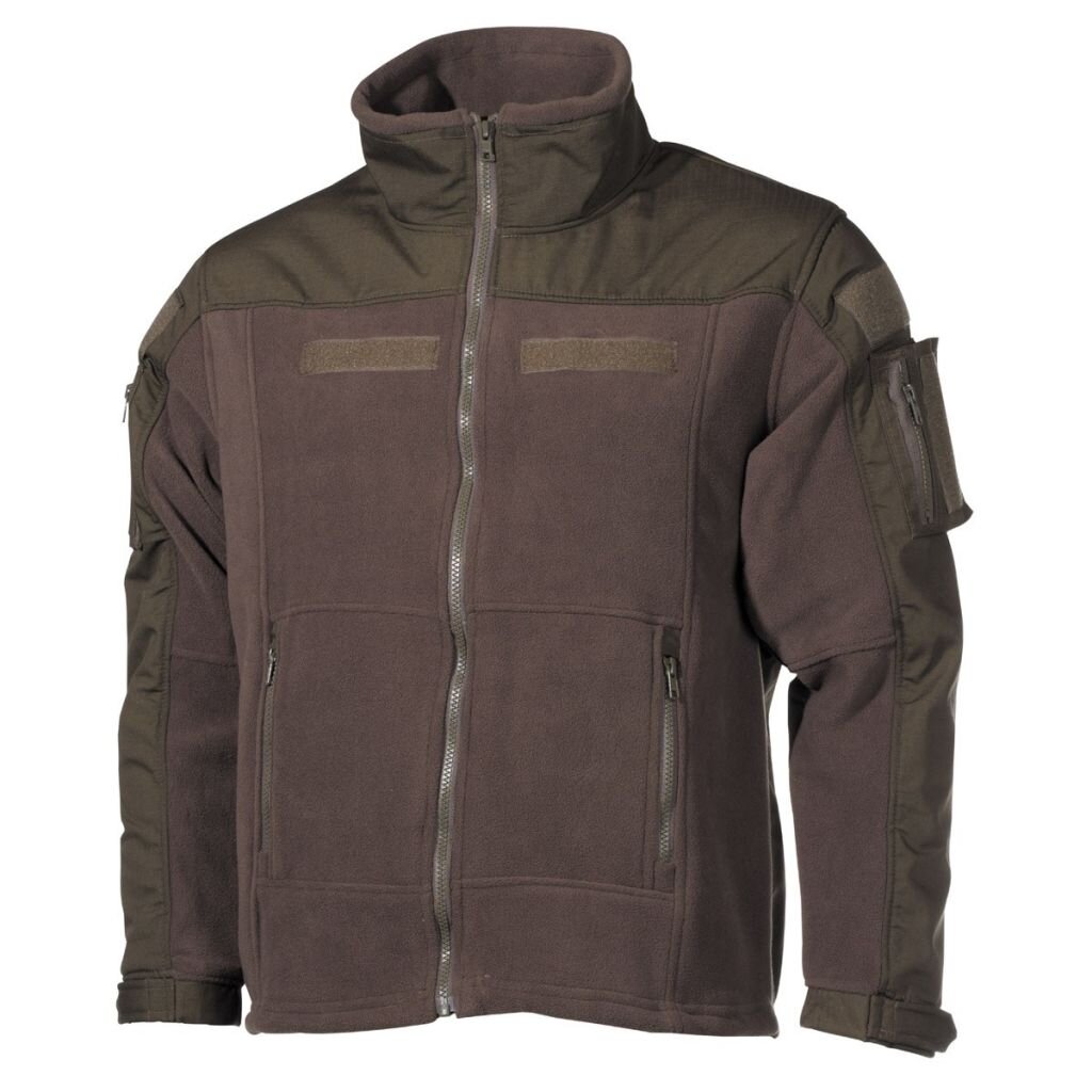 Kvalitní fleecová bunda se zapínáním na zip od německé značky MFH.Přináší vysoký komfort při nošení díky zesílenému Rip-Stop materiálu na ramenou, pažích a zádech.Vlastnosti:• prostorné kapsy na zip• kapsy na rukávech• stahovací manžety na rukávech• spodní lem s elastickou šňůrkou• větrací otvory na zip v podpaží• velcro panely na suchý zip na hrudníku a pažích