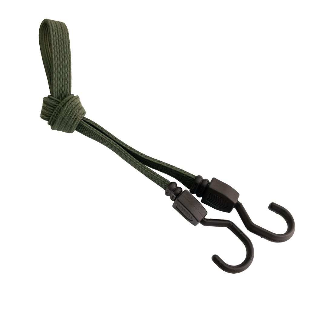 Plochý elastický gumicuk, s plastovými háčky na koncích. Délka 80 cm, barva zelená. číst celé