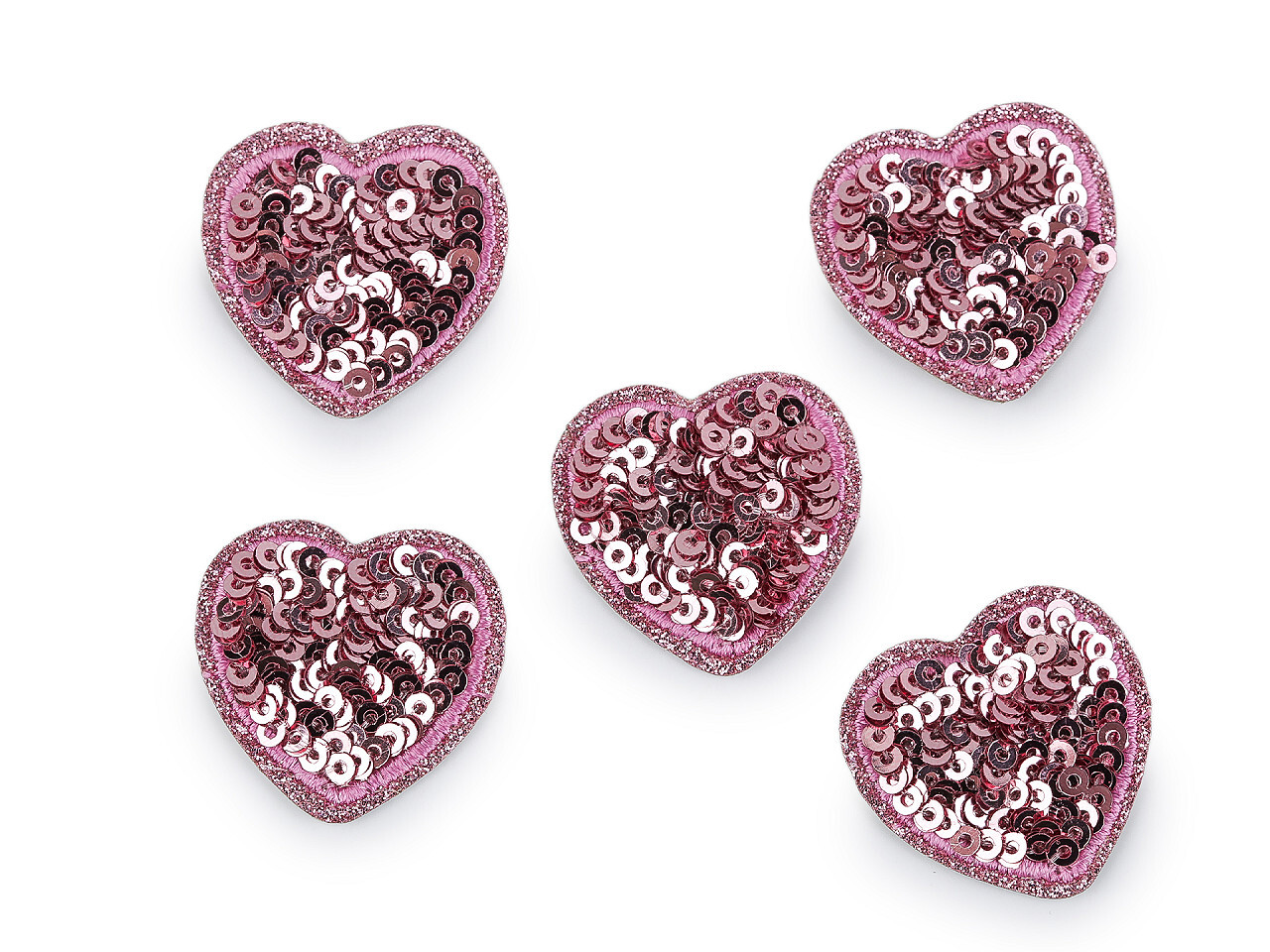 Nažehlovačka srdce s flitry - 10 ks - 4 pudrová