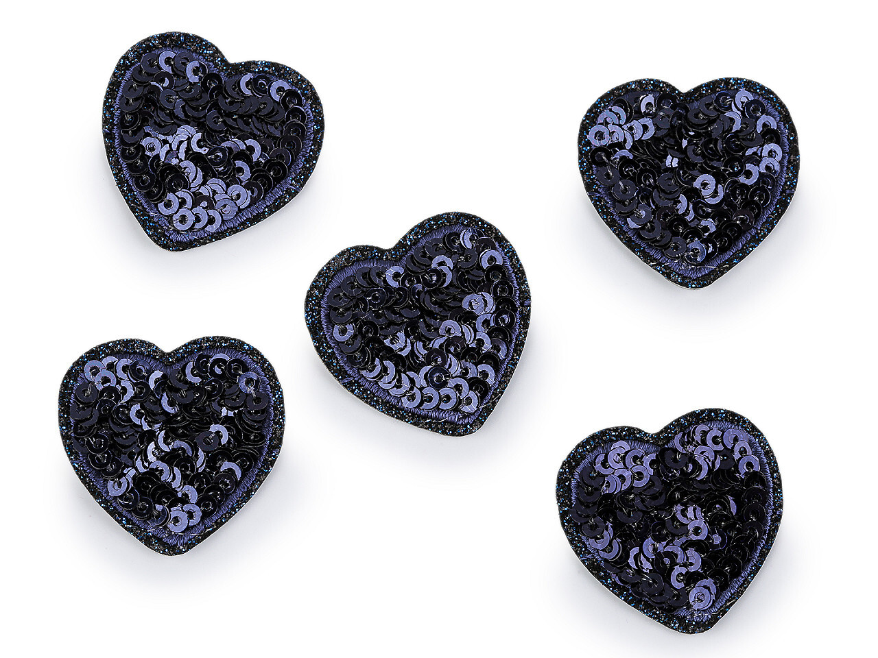 Nažehlovačka srdce s flitry - 10 ks - 6 modrá tmavá
