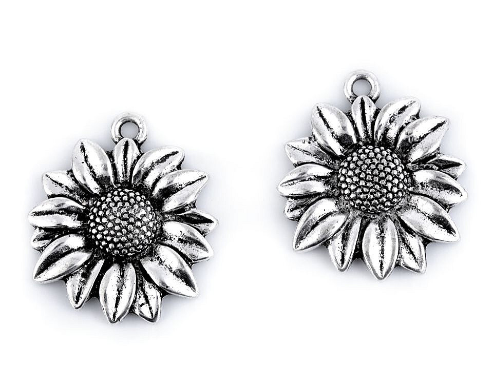 Přívěsek slunečnice 23x27 mm - 10 ks - platina s patinou