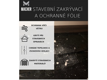 - Určení: stavební fólie pro ochranu před prachem, nečistotami a povětrnostními vlivy