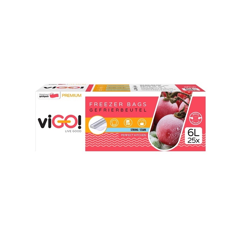 Sáčky viGO! jsou navrženy tak, aby mimořádně odolaly nízkým teplotám mrazničky, zároveň jsou lehké a snadno použitelné. Mikrotén o síle 25 mikronů zaručuje pevnost a odolnost proti protržení a protržení, což je nezbytné pro bezpečné skladování potravin. Balení obsahuje 25 kusů, takže máte dostatek sáčků pro různé druhy potravin - masa, zeleniny, ovoce nebo hotových jídel.