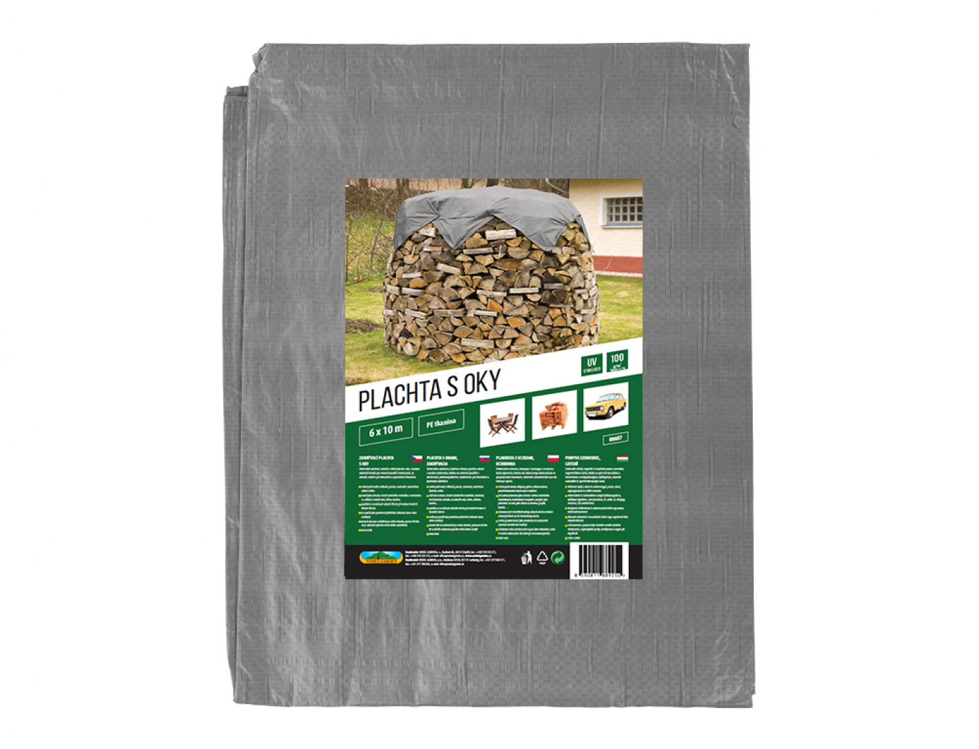 Univerzální zakrývací, izolační a stínící plachta s oky má vysokou odolnost. Je vhodná pro celoroční použití v domácnosti, na zahradě, stavbě, a při rekreačních a sportovních činnostech. Chrání proti vodě, vlhkosti, prachu, mastnotě, slunečnímu záření a větru. Slouží jako ochrana a krytí stavebního materiálu a mechanizace, nářadí, k zakrytí auta, dřeva, bazénu. Používá se na dočasné zakrytí střechy při realizaci krovů či děravé střechy, lze ji použít i jako provizorní přístřešek (náhrada stanu nebo markýzy). Kovová oka jsou umístěna po celém obvodu, pomocí těchto ok je zakrývací plachta velmi dobře uchytitelná. Je UV stabilizovaná. Gramáž: 100 g/m2 (+/-5%). Rozměry: 6 x 10 m. Barva: šedá.