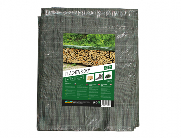 Univerzální zakrývací, izolační a stínící plachta s oky s vysokou odolností vhodná pro celoroční použití v domácnosti, na zahradě, stavbě a při rekreačních a sportovních činnostech. Chrání proti vodě a vlhkosti, prachu, mastnotě, slunečnímu záření a větru. Slouží jako ochrana a krytí stavebního materiálu, stavební mechanizace, nářadí, k zakrytí auta, dřeva, záhonu, bazénu. Používá se na dočasné zakrytí střechy při realizaci krovů či děravé střechy. Kovová oka jsou umístěna po celém obvodu, pomocí těchto ok je plachta dobře uchytitelná. Barva: zelená. Gramáž: 55 g/m2. Délka: 10 m, výška: 6 m.
