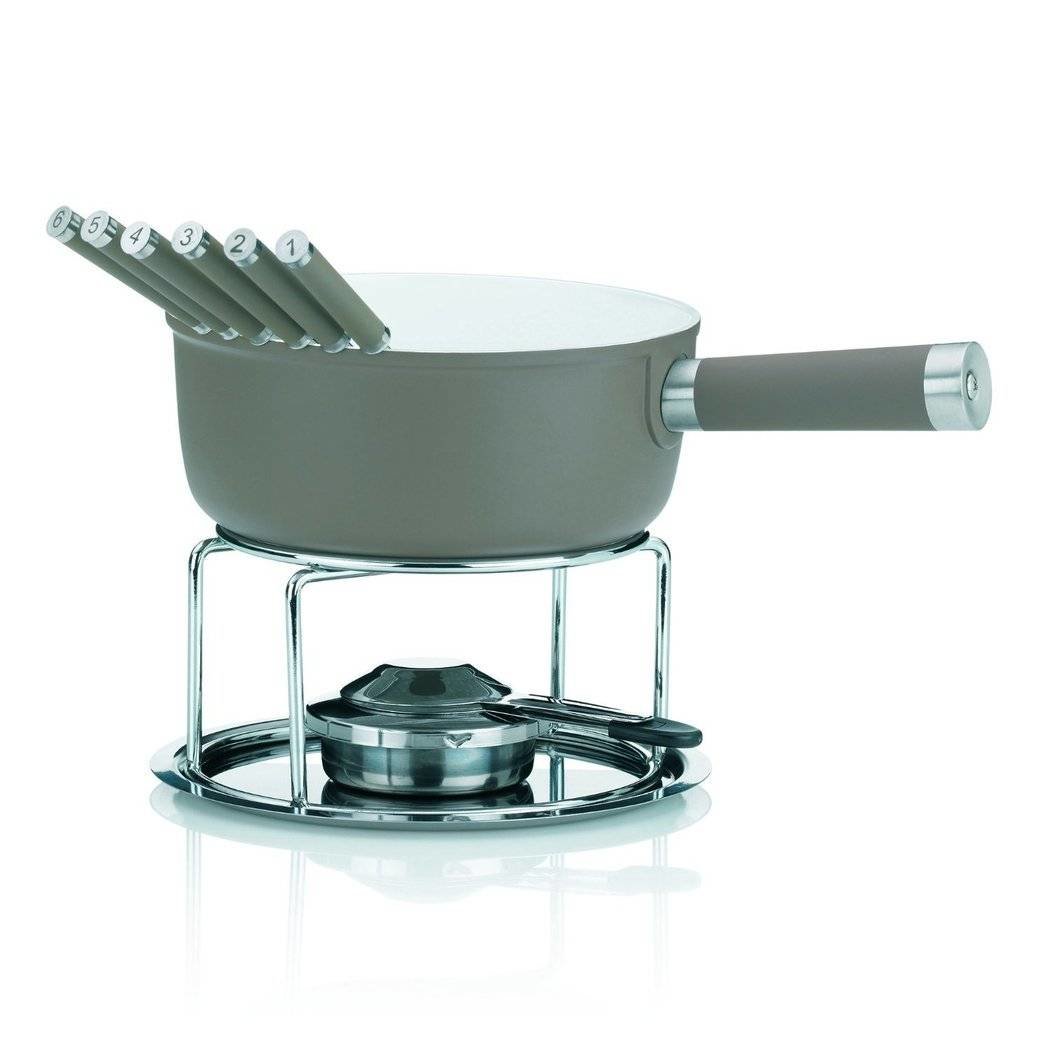 Keramická souprava na přípravu fondue Lancy v šedé barvě, s objemem 1 l. Speciální keramický hrnec pomalu ohřívá a taví sýr.
