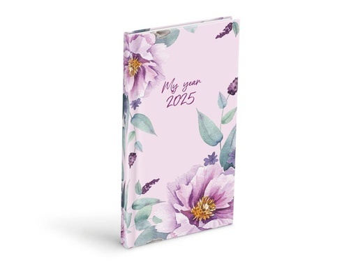 Týdenní diář pro rok 2025 ve světle fialové barvě, s motivem květů. Je výborným pomocníkem při organizování Vašeho času. Povrch obálky je vyroben z lesklého lamina. Diář má odtrhávatelný spodní rožek, který umožní rychlé nalistování aktuálního týdne. číst celé