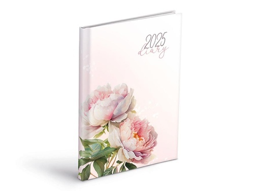 Týdenní diář pro rok 2025 ve formátu A5, s motivem pivoněk, který je výborným pomocníkem pro organizování Vašeho času. Diář má odtrhávatelný spodní rožek, který umožní rychlé nalistování aktuálního týdne. Povrch obálky je vyroben z lesklého lamina.