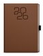 Decentní denní diář z příjemného materiálu v hnědé barvě a s moderní ražbou roku. Denní diář A5 Vám pomůže efektivně naplánovat každý den. strukturovaný materiál, ražba roku, jednostranná pěnová výplň desek, šitá vazba V8, poutko na tužku, stužka, kapitálky, perforované rožky, mapa ČR a SR, vlepená kapsa, ofset, 70g/m2