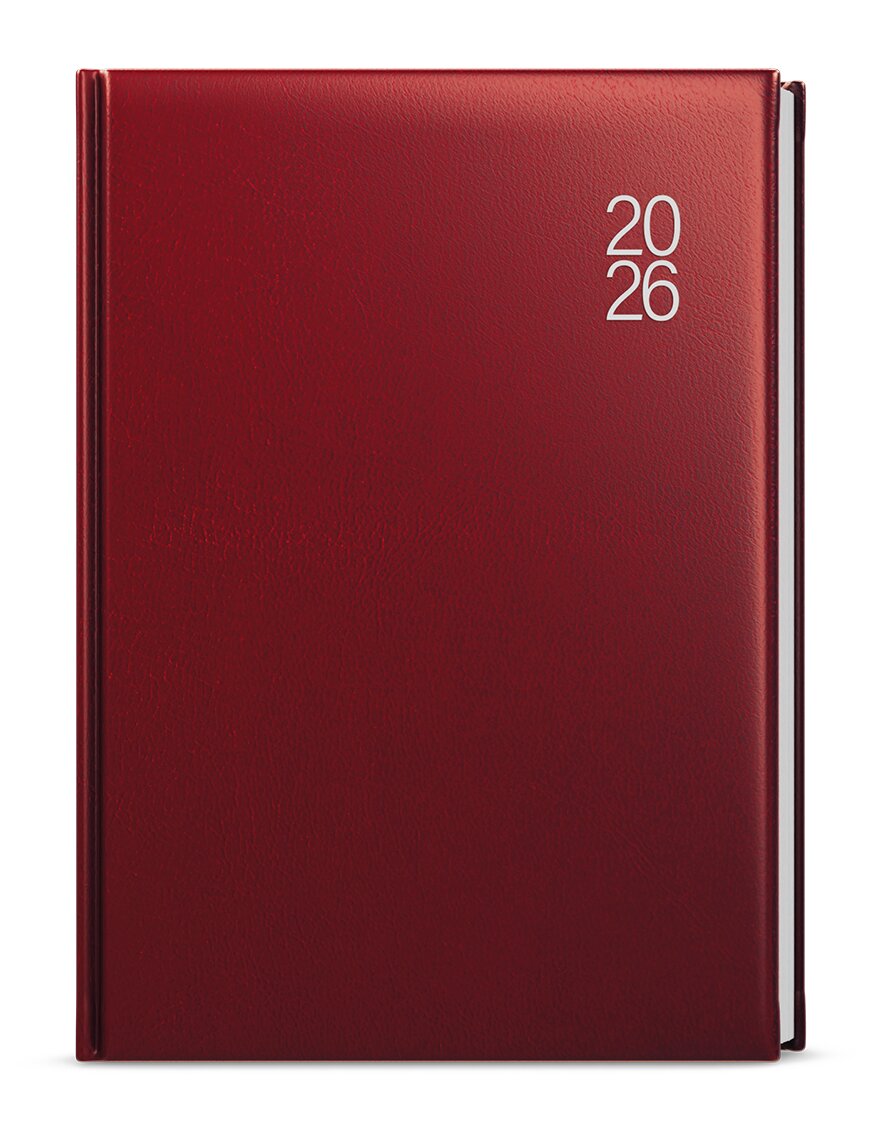 Týdenní diář v barvě bordó ve formátu A5 je vyráběný z oblíbeného, jemně strukturovaného materiálu. Diář má velký prostor pro poznámky a plánování. pololesklý, jemně strukturovaný materiál, ražba roku přes stříbrnou pásku, jednostranná pěnová výplň desek, šitá vazba V8, stužka, kapitálky, perforované rožky, mapa ČR a SR, vlepená kapsa, ofset, 70g/m2