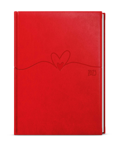 Týdenní diář v červené barvě vyráběný z jemné hladké vivelly s efektní ražbou motivu Srdce. Formát A5 je vhodný do tašky a má velký prostor pro poznámky a plánování. číst celé