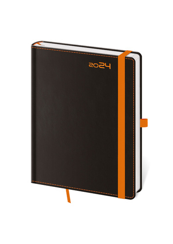 Diář 2024 týdenní B6 Black Orange s poutkem na propisku