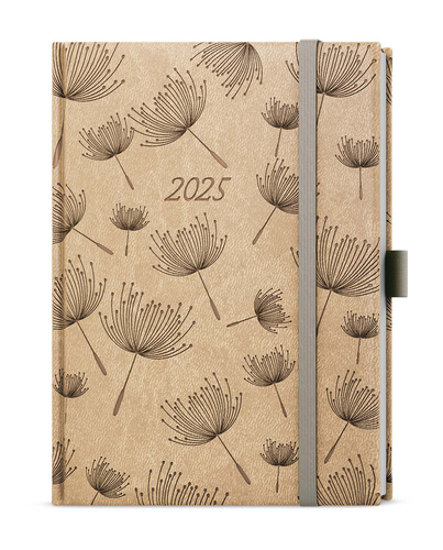 Denní diář v béžové vivelle s krásnou celoražbou motivu Chmýří. Diář v B6 formátu s velkým prostorem pro poznámky a plánování.