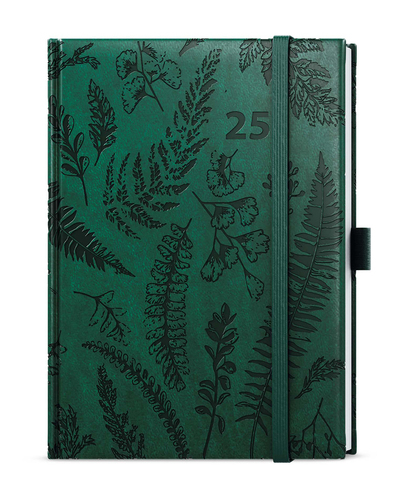 Diář v zelené vivelle s krásnou celoražbou motivu Kapradí. Diář v B6 formátu s velkým prostorem pro poznámky a plánování.