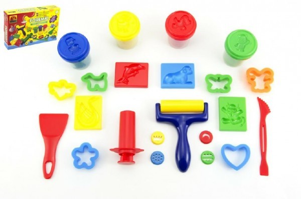 Tvořivá hmota/modelína 4ks + vykrajovátka sada 22ks v krabici 29x19x6cm