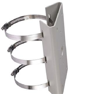 S pomocí adaptéru Hikvision DS-1275ZJ lze upevnit na sloup standardní kamerové držáky určené k montáži na zeď. Tři hadicové spony, které jsou součástí balení, umožňují instalaci