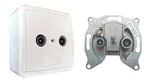 Kvalitní antenní průběžná učastnická zásuvka třídy A s bílou krabičkou a víčkem. Útlum: