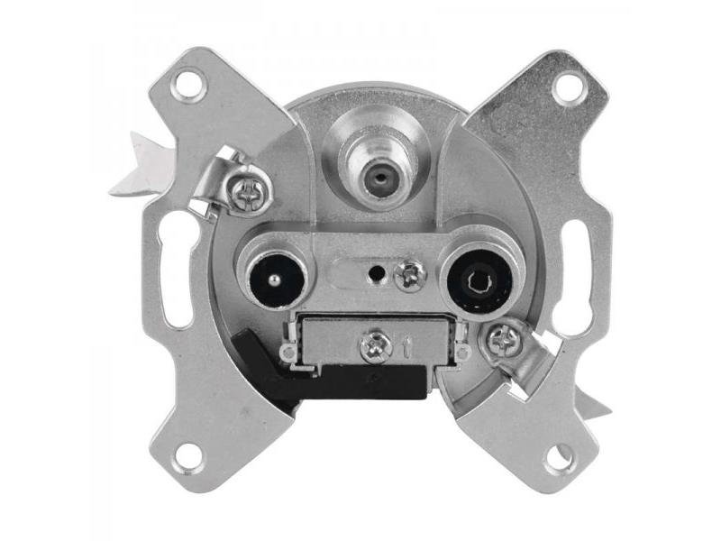 Účastnická zásuvka EU 3303 satelitní koncová s útlumem 3 dB a zdířkami pro TV + Rádio + SAT. SAT zdířka průchozí pro stejnosměrné napětí a lze ji také využít pro průchod napájení předzesilovače v terestrické anténě.