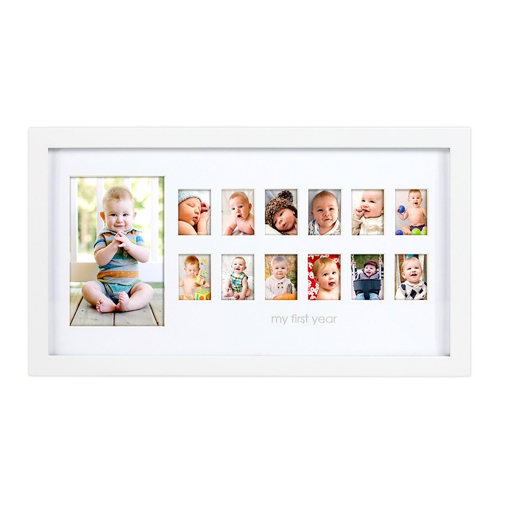 Fotorámeček Pearhead První rok života je víc než jen obyčejný rámeček - je to nádherný způsob, jak uchovat vzpomínky na jedinečný vývoj vašeho dítěte. Tento elegantní dřevěný rámeček v bílé barvě nabízí prostor pro 13 fotografií, které zachytí všechny důležité momenty prvního roku života - první úsměvy, veselou náladu i první zoubky.