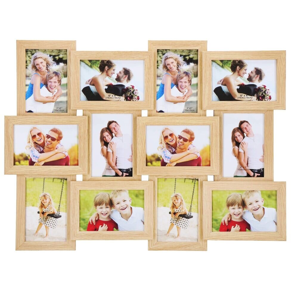 Stylový fotorámeček v imitaci světlého dřeva, do kterého snadno umístíte 12 fotografií formátu 15x10 cm v kombinaci na výšku i na šířku. Fotografie se v něm elegantně naaranžují tak, aby působily úhledně a atraktivně. Díky jednoduchému systému vložení ze zadní strany a praktickým úchytům na vodorovné zavěšení se stane ideálním doplňkem každého interiéru.