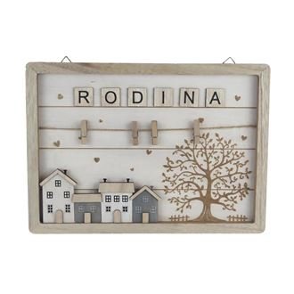 Dekorační závěsná dekorace s kolíčky na fotky nebo zapsané poznámky.Rozměry : 35 x 25 cm, tloušťka 2 cm.Barva : kombinace přírodní, bílá.Materiál na bázi dřeva. číst celé
