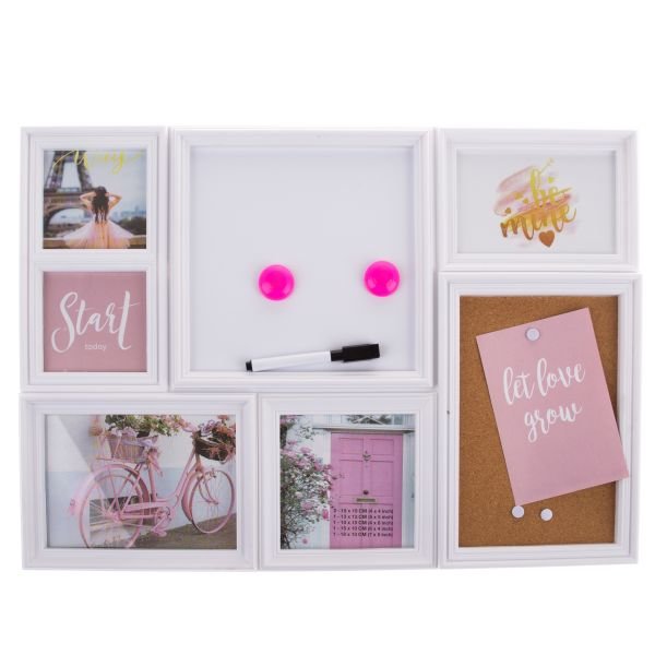 Plastový rámeček na 5 fotek s tabulkou na poznámky je ideálním řešením, jak si uchovat své oblíbené fotografie a zároveň přidat osobní poznámky. Tento praktický doplněk ozvláštní váš interiér i pracovnu a pomůže vám mít vždy po ruce důležité vzpomínky a informace.