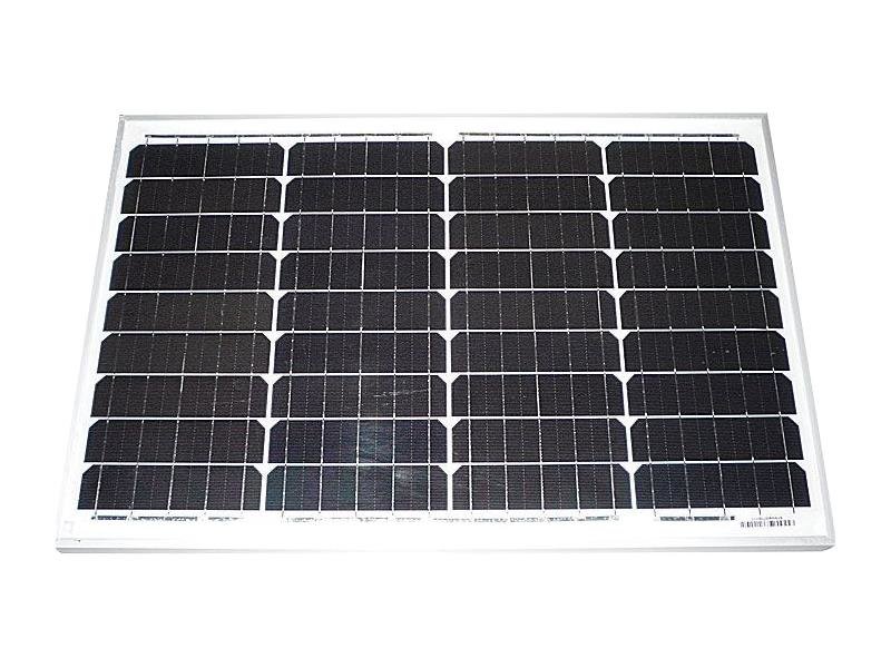 Fotovoltaický solární panel 12V/40W vyrobený z monokrystalického křemíku. Duralový rám 30 mm, krycí sklo. Monokrystalický článek: pro výrobu monokrystalického článkuje třeba vyrobit jednolitý ingot křemenného krystalu. Taková výroba je poměrně náročná. Kulatý ingot se potom řeže na tzv. wafery, které se oříznou na požadovanou velikost FV článku. Protože ingot vznikl jako jeden velký krystal křemíku, jeho struktura je jednolitá a velice čistá.