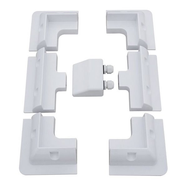 - Počet kusů v sadě: 7 (4 rohové držáky, 2 boční držáky, 1 kabelová průchodka)
