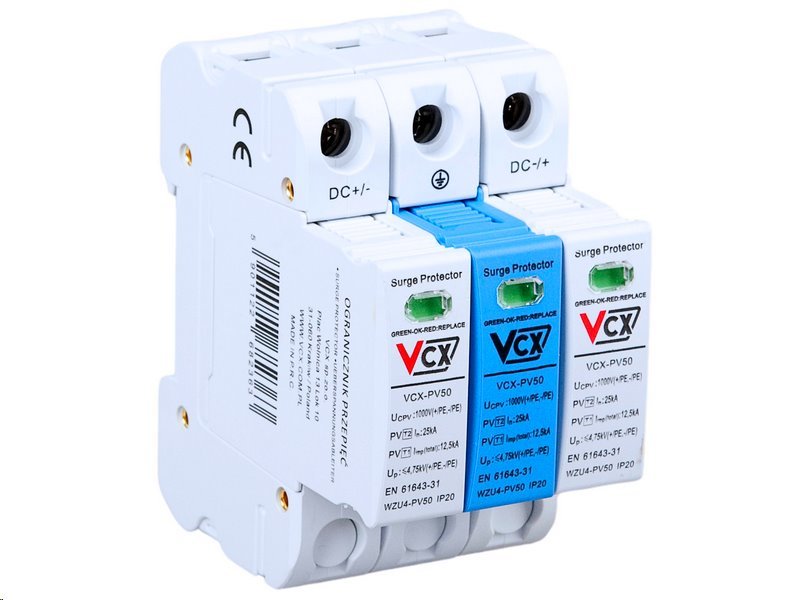 Přepěťová ochrana VCX PV50 DC třída T1T2 (B+C) 3P 1000V 12.5 kA GDT s plynovým jiskřištěm