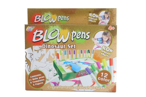 Velká sada foukacích fixů obsahuje lepenkový podstavec a držák na fixy, 12 barevných fixů, 8 šablon, 6 papírů a nástavec na foukání s pumpičkou. Rozměry balení cca 30 x 27 x 5 cm. Věk 4+ číst celé