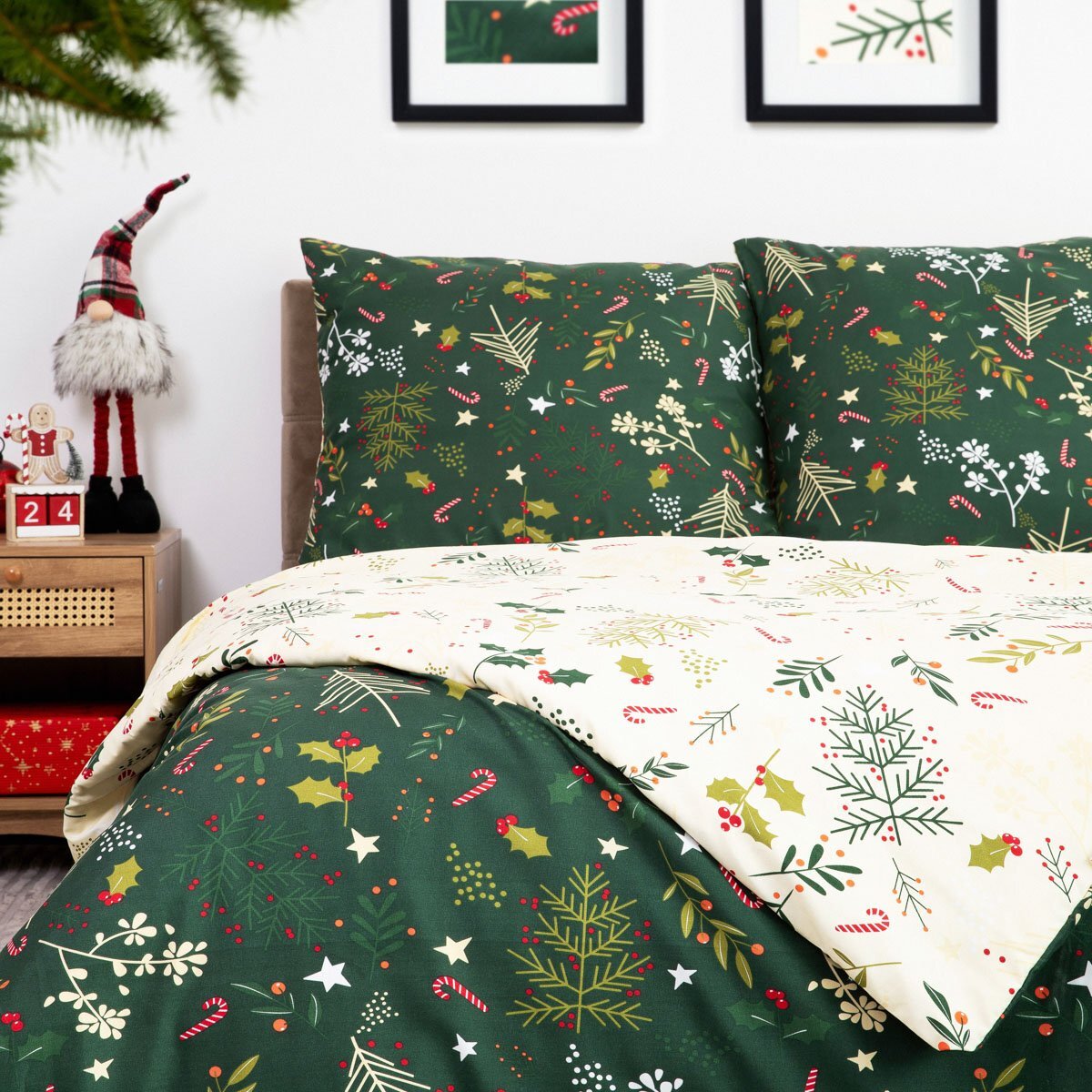 Vánoční mikrovláknové povlečení | GODIS | oboustranné zeleno-béžové s vánočním motivem | 200x220 cm | 858562