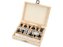 - Přehledné uložení všech fréz v dřevěném kufru s bezpečným zavíráním.