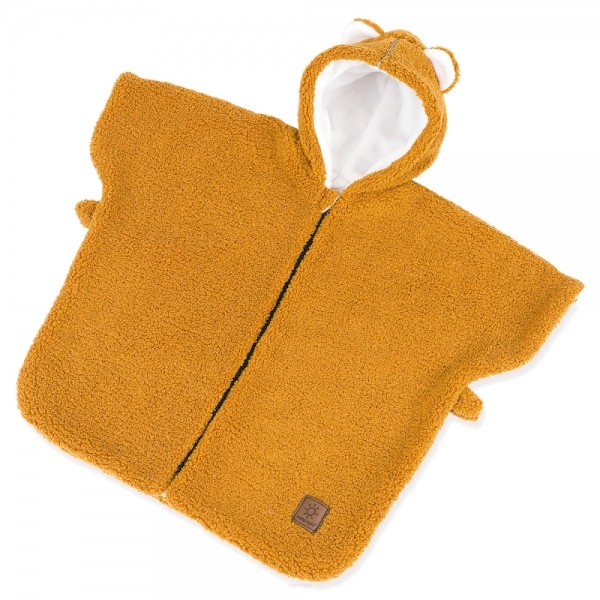 Dětské oteplené pončo do auta s kapucí, hořčicová; 80-98 (9-36m)