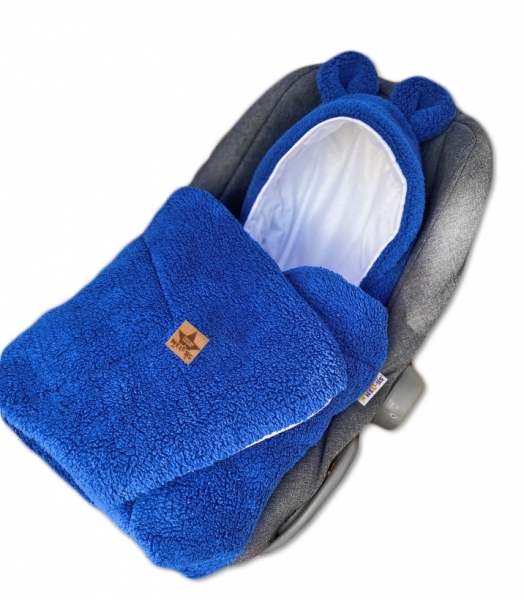 Oteplená zavinovací deka Medvídek do autosedačky, 100x100 cm, modrá