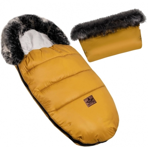 Zimní fusak s kožešinou + rukávník zdarma, Baby Nellys, 50 x 100cm, hořčicový