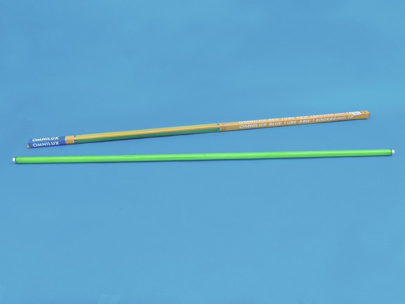 Skleněná zářivková trubice Omnilux vrůzných barvách spaticí G13.Napětí: 230 V AV, 50 HzPříkon: 58 WPatice: G13Životnost: 5000 hodRozměry: 1500 x 26 mm
