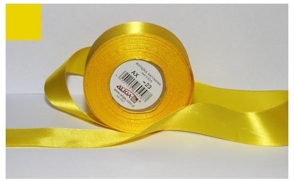 Wstążka satynowa żółta 25 mm 32 mb. AX25-23, Aliga