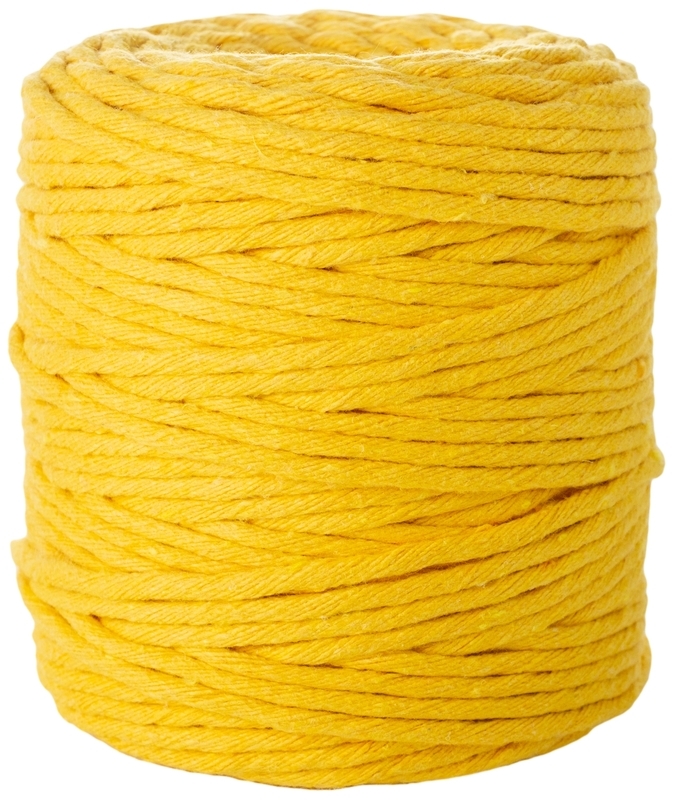 Sznurek bawełniany do makramy, kolor żółty. Rozmiar: 5 mm (splot 21 nitek), długość 100m. . Sznurek idealnie nadaje się do tworzenia różnego rodzaju ozdób, takich jak: łapacze snów, gobeliny, dekoracje ścienne, zasłony, girlandy, koronki, obrusy, kwietniki, torby, siatki, naszyjniki, kolczyki, koraliki, bransoletki i wiele innych. . Wysoka jakość Pojedynczo skręcany