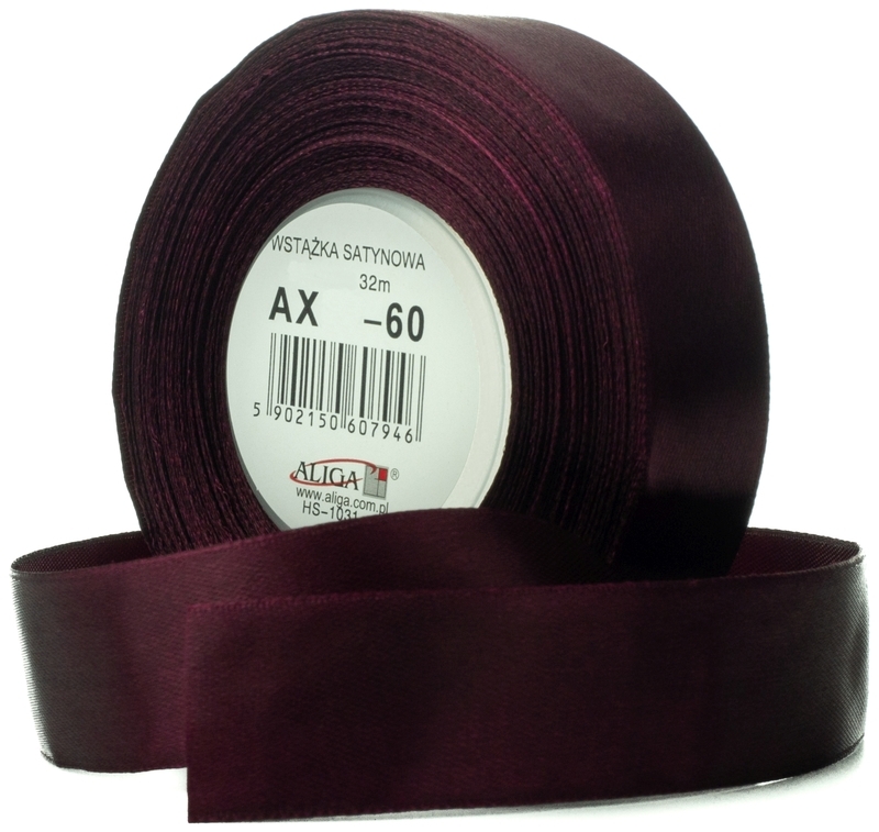 Wstążka satynowa bordowa 25 mm 32 mb. AX25-60, Aliga