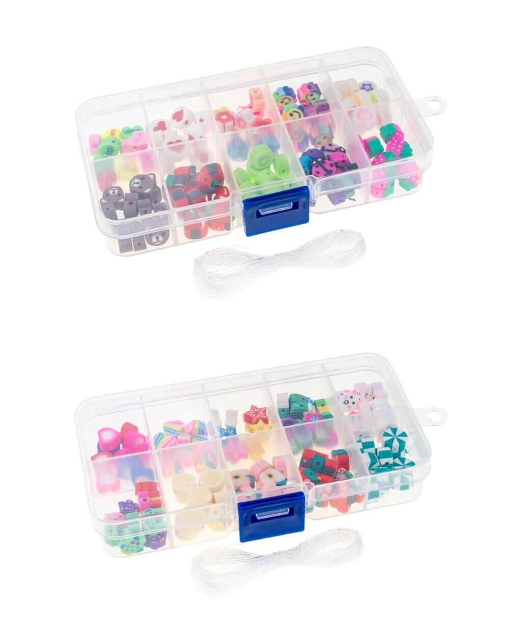 Barevný mix korálků v krabičce s dětskými motivy. číst celé
