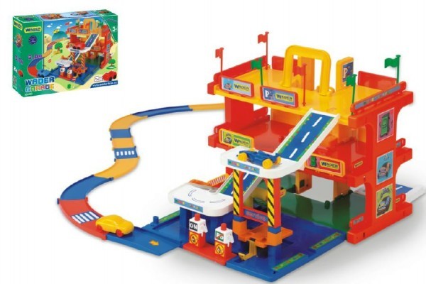 Myčku, benzínovou pumpu, výtah i servisní stanici najdete v autogaráži Wader. Garáž se třemi patry a dráhou nadchne každého kluka, který si rád hraje s autíčky, v krabici. Rozměr garáže: 90 x 80 cm (3 patra) + dráha 3 m, šíře silnice 6,5 cm Vhodná od 3 let