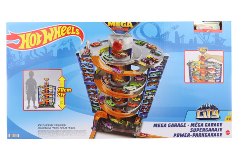 Herní set Hot Wheels™ City Vylepšená mega garáž, to jsou čtyři patra parkovací nádhery! Dodává se s jedním angličákem v měřítku 1:64, ale zaparkuješ do ní téměř o 60 aut více (další auta se prodávají samostatně). Uprostřed je spirálový výtah, který přepravuje auta mezi různými patry a vypouští je na trať. Děti ho ovládají klikou a určují tak, jestli bude auto pokračovat v dalších dobrodružstvích, nebo jestli zajede na své výstavní parkovací místo. Garáž je možné na několika místech připojit k dalším setům Hot Wheels® (prodávají se samostatně). Na čtyřech místech je také možné připojit k ní oranžodráhu. Obsahuje jeden angličák Hot Wheels® v měřítku 1:64, aby akce mohla začít hned po vybalení z krabice! Barvy a vzhled výrobku se mohou lišit.