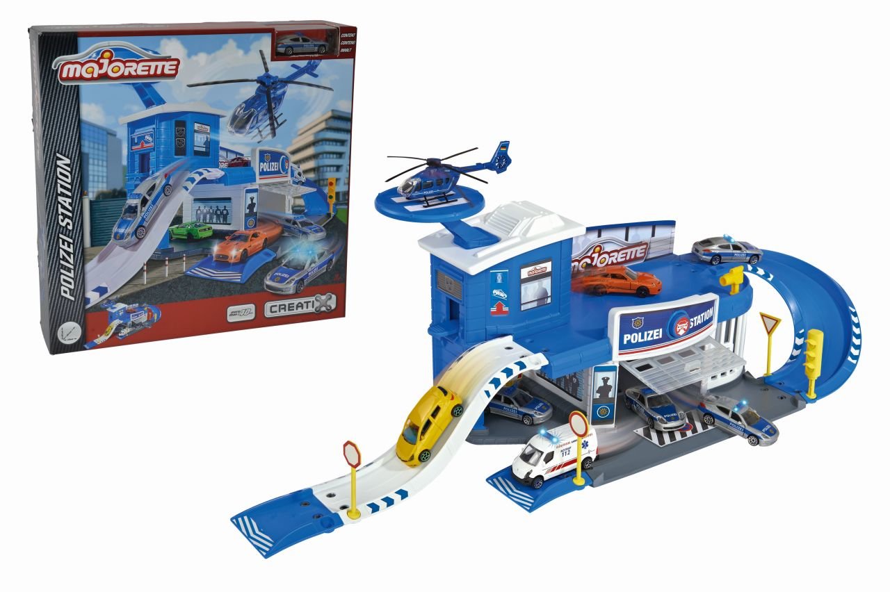 Policejní garáž Creatix má dvě podlaží, celu, garáž i heliport. Jedno autíčko součástí. Rozměry rozložené garáže: 72 x 22 x 30 cm. Všechny garáže Creatix jsou vzájemně kompatibilní.