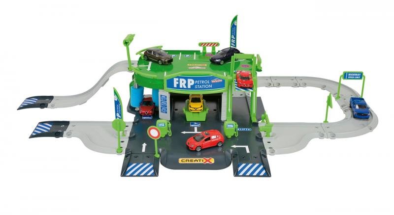 Nová garáž Creatix má dvě patra, manuálně ovládáný výtah, myčku aut i čerpací stanici. Příjezdové silnice lze libovolně sestavovat. Součástí je 1 kovové autíčko. Rozměry rozložené garáže: 78x39x20 cm. Všechny garáže Creatix jsou vzájemně kompatibilní. číst celé