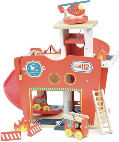 Hasiči, hoří! Vystupte z výtahu, otevřete posuvné dveře a zvedněte závoru pro výjezd aut. Hasičská stanice má několik funkcí a deset doplňků, s kterými si děti mohou vytvářet vlastní příběhy a rozvíjet svou představivost. Možno kombinovat s dalšími sety Vilacity. Hračky Vilac mají značku francouzské agentury ADEME, to znamená, že tyto dřevěné hračky jsou vyráběny ekologicky. Šetří životní prostředí, neznečišťují půdu, vodu a vzduch, neplýtvají energiemi.